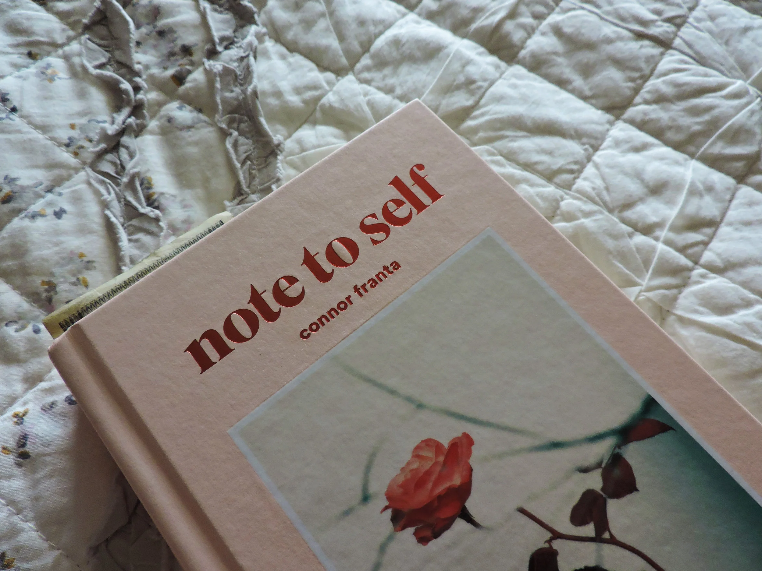 I read Note to Self first, not knowing who Connor Franta was or what he stood for. And it has been a blessing since the moment I picked it up in Barnes & Noble. Literally, I got a flat tire just ten minutes after buying it, and with my phone at 20% this book got me through an hour of waiting around for Triple A at a petroleum station in the rain. And later, anxiety and depression and general worries that come with navigating 20something and being a part of this current world and generation.