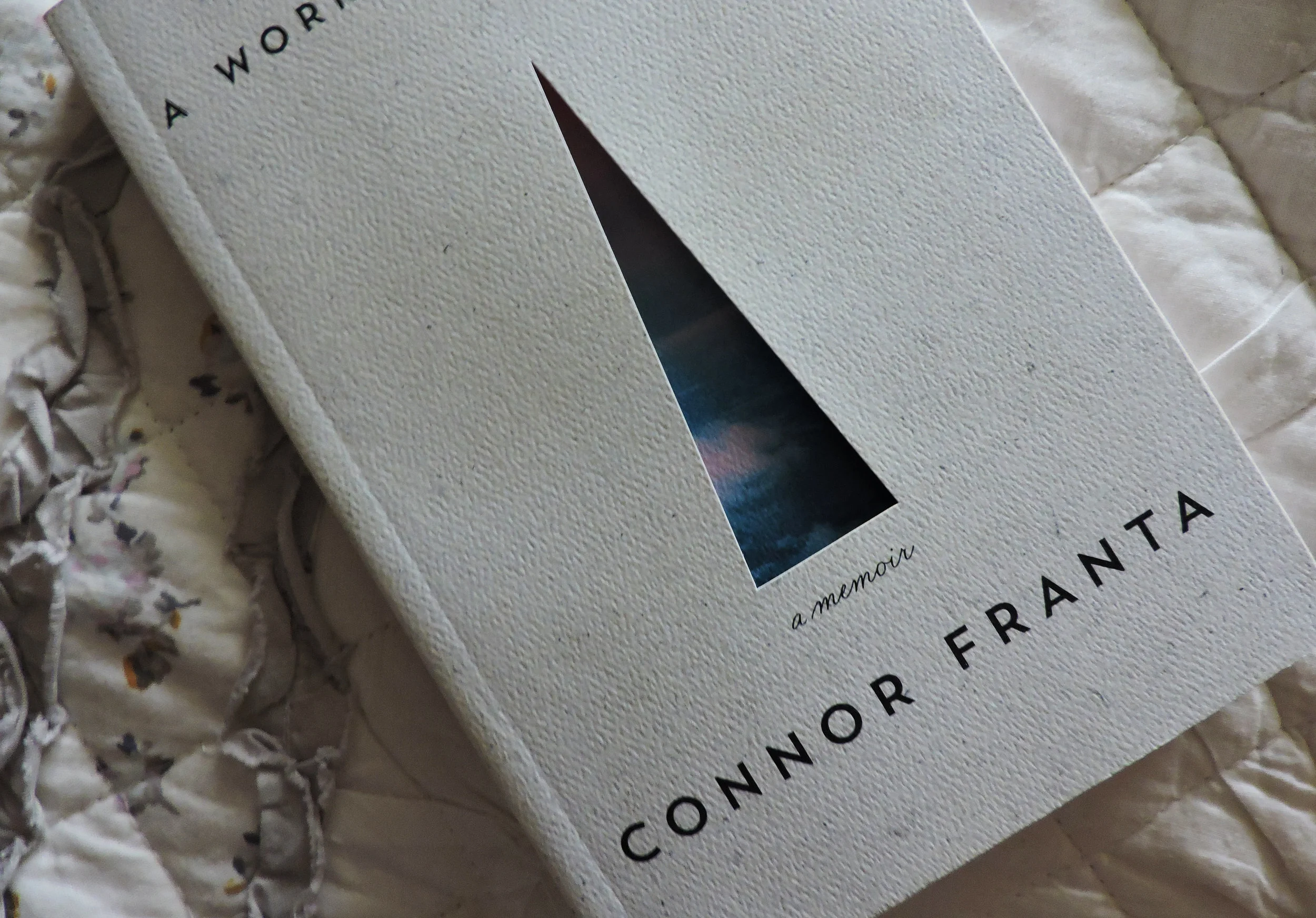 I was attracted to this book originally because of the aesthetic. If you follow Connor on Instagram (@connorfranta), this aesthetic continues well into his feed of photography and musings. Flipping through I saw photos of roses and windows, poems reminiscent of Milk and Honey, and personal essays titled "her peach sunglasses" and "it will all be okay." Trendy, but visually sound; simple and reassuring at first glance.